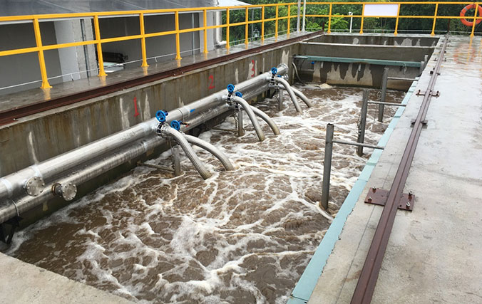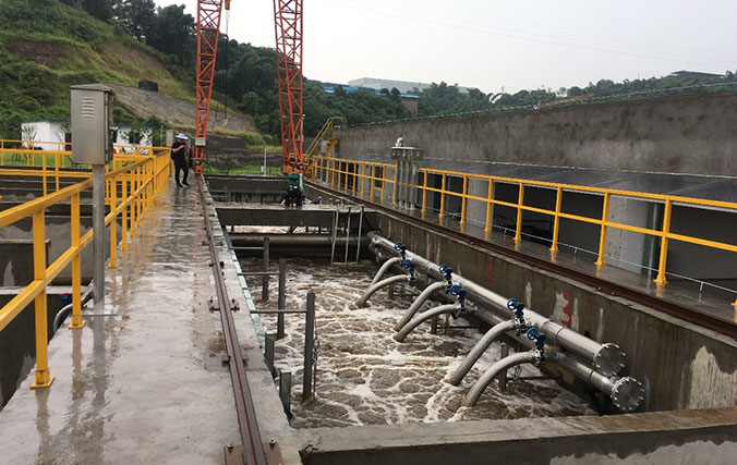 本項目設(shè)計規(guī)模15000噸/天,分三期實施,一期新建日處理5000噸/天污水處理廠,深度處理工藝MBR系統(tǒng)設(shè)計一期處理規(guī)模為3000噸/天,污水處理主體工藝采用A2O+MBR,出水排放標準達到《四川省岷江、沱江流域水污染排放標準》(DB51/2311-2016)合格標準。項目選型為水藝SMU-30A產(chǎn)品,設(shè)計平均通量為13.35L/m2/h。項目設(shè)計2座膜池,每座膜池布置6個膜架,每個膜架52簾SMU-30A,共用膜面積9360平方。項目投運時間為2018年3月。