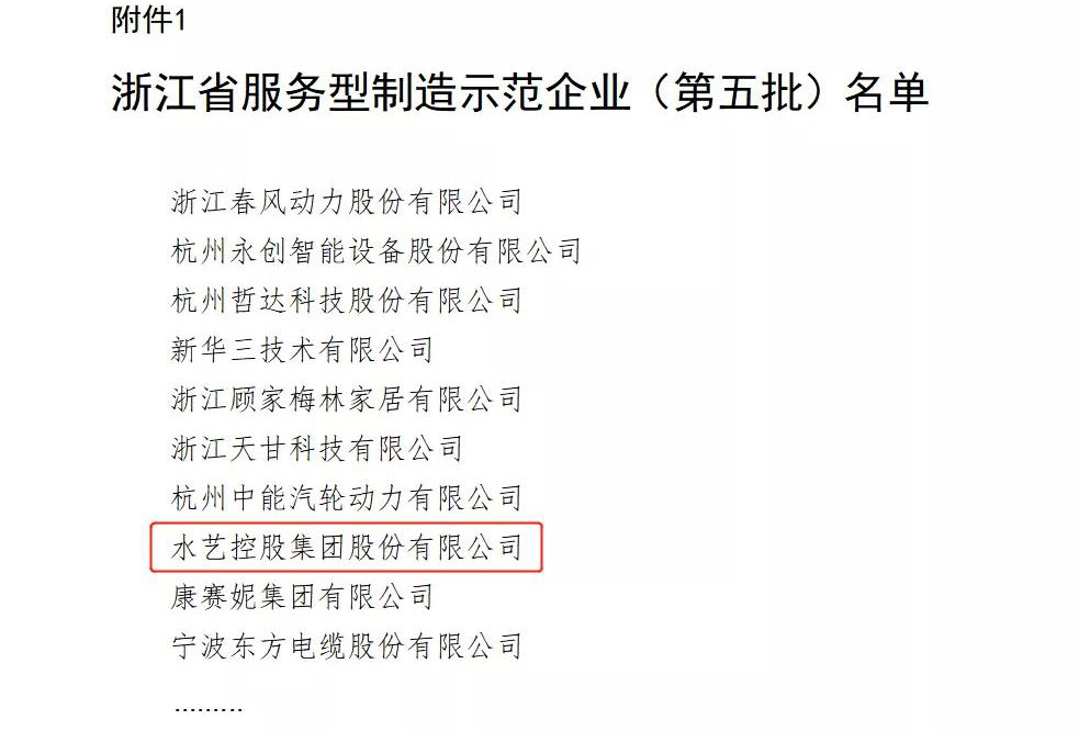 水藝集團(tuán)入選浙江省服務(wù)型制造示范企業(yè)