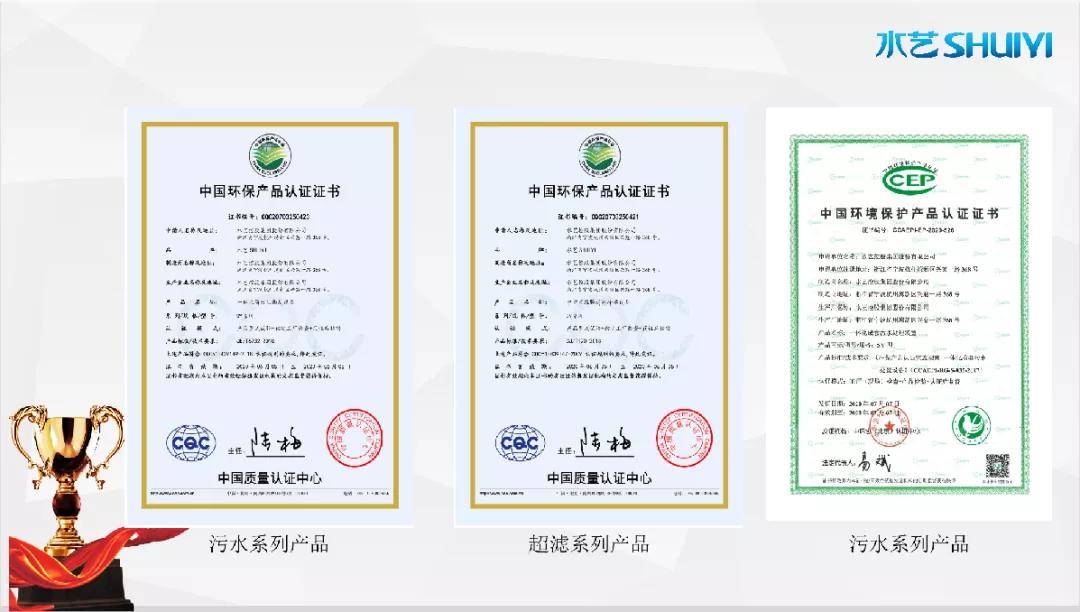 2020年,“Slufri-MBR一體化高效生物反應(yīng)器”與“中空纖維膜超濾凈水設(shè)備”系列產(chǎn)品通過(guò)中國(guó)質(zhì)量認(rèn)證中心(CQC)“中國(guó)環(huán)保產(chǎn)品認(rèn)證”。與此同時(shí),“Slufri-MBR一體化高效生物反應(yīng)器”通過(guò)了中國(guó)環(huán)境保護(hù)產(chǎn)業(yè)協(xié)會(huì)(CCAEPI)"中國(guó)環(huán)境保護(hù)產(chǎn)品認(rèn)證”。七月,水藝內(nèi)壓式超濾膜過(guò)濾水處理技術(shù)入選《2020年度浙江省水利新技術(shù)推廣指導(dǎo)目錄》。