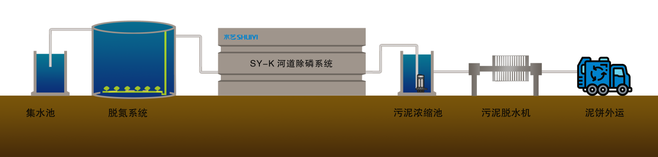 SY-K河道脫氮除磷系統(tǒng)設(shè)備高度集成,生化反應(yīng)快速,去除效率高、出水水質(zhì)好、可直接回用。從缺氧反應(yīng)池回流污泥到厭氧反應(yīng)室,創(chuàng)造了有利于聚磷菌的厭氧釋磷的環(huán)境,強化了聚磷菌的生物選擇,從而實現(xiàn)高效除磷脫氮。
