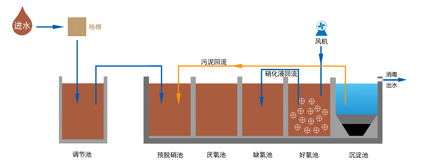 新型UCT一體化高效生物反應(yīng)器,采用改良型UCT工藝結(jié)合改性MBBR生物膜工藝,提升了傳統(tǒng)的A2/O工藝脫氮除磷效果。設(shè)備運(yùn)行維護(hù)簡單,出水可穩(wěn)定達(dá)到《城鎮(zhèn)污水處理廠污染物排放標(biāo)準(zhǔn)》(GB18918-2002)一級A標(biāo)準(zhǔn)。